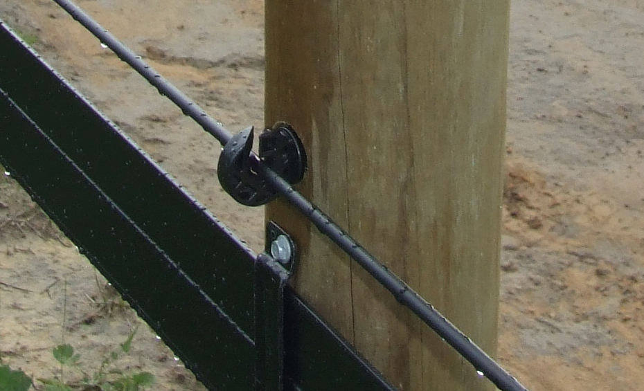 Heavy-duty plastic insulator. Easily screwed into timber or PVC posts.